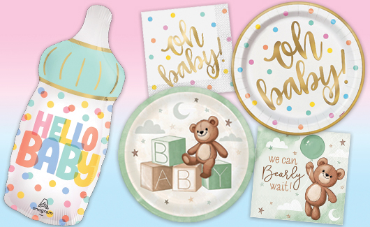 Celebrate the mommy-to-be with baby shower supplies in pinks, blues, and gender neutral designs. Or throw a gender reveal party and keep people guessing until the big moment. Either way, Partystore has all the baby shower supplies you need from invitations, to banners, decor and tableware, plus fun games and favors for your guests to enjoy.
